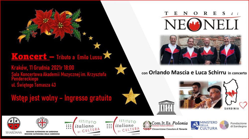 Stowarzyszenie Sardyńczyków w Polsce Shardana oraz Włoski Instytut Kultury w Krakówie majš przyjemnoć zaprosić Państwa na pierwszy w Krakowie koncert Tenores di Neoneli.