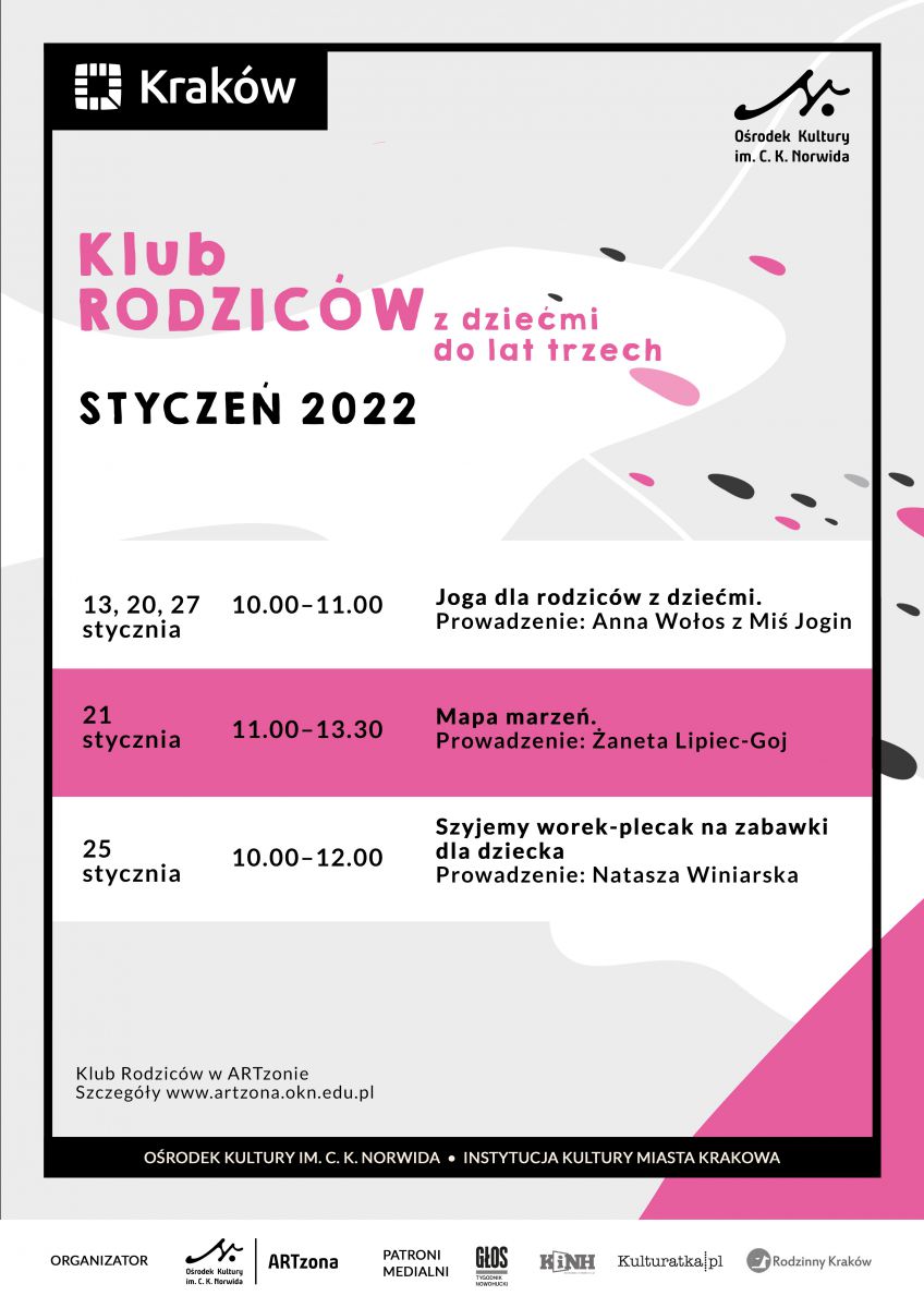 Zapraszamy na spotkania w ramach Klubu Rodziców w ARTzonie. Dzięki społecznoci rodziców skupionych wokół Orodka Kultury im. C. K. Norwida poznalimy potrzeby i oczekiwania rodziców małych dzieci wobec oferty zajęć instytucji kultury. Słuchamy Waszych pomysłów i kierujemy się potrzebami, by jeszcze bardziej włšczać rodziców i dzieci do wspólnych działań.