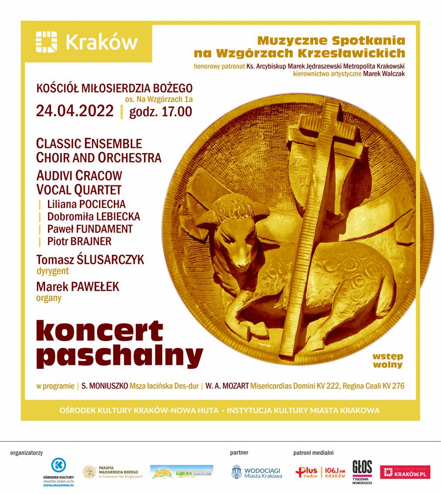 W pierwszš niedzielę po Wielkanocy - 24 kwietnia, w więto Miłosierdzia Bożego i obchodzony, w tym dniu parafialny odpust, w kociele na Wzgórzach Krzesławickich o godzinie 17.00 odbędzie się Koncert Paschalny w ramach cyklu Muzyczne Spotkania na Wzgórzach Krzesławickich.