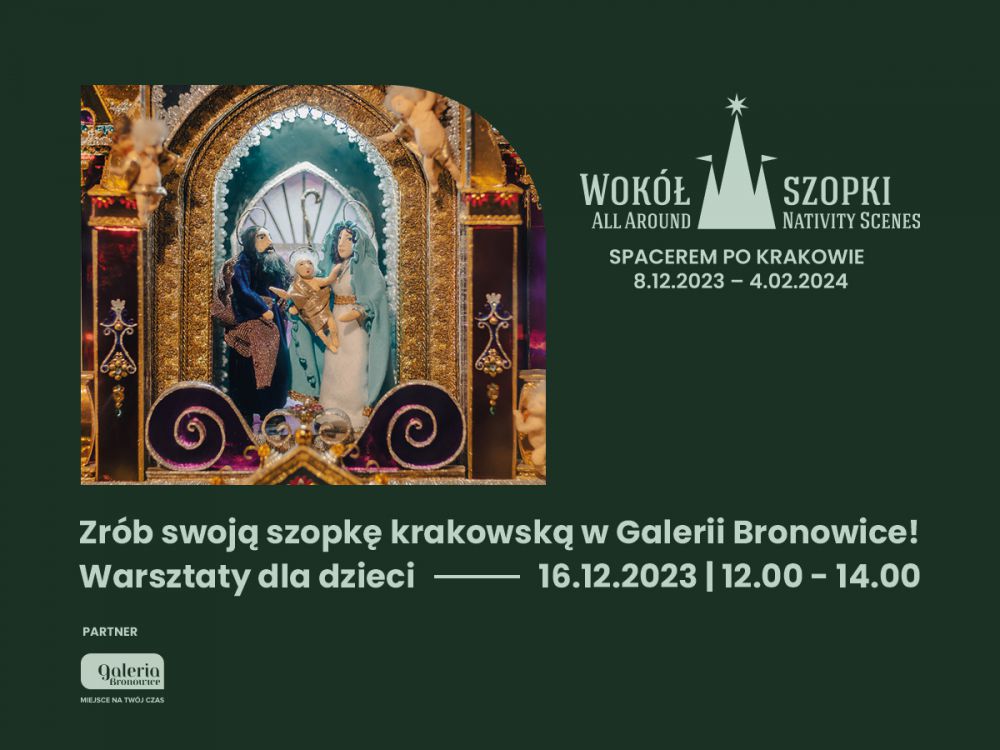 Boże Narodzenie to wyjątkowy i rodzinny czas, z niecierpliwością wyczekiwany przez najmłodszych. Adwentowe odliczanie dzieciom umilić mają warsztaty „Wokół Szopki”, podczas których własnoręcznie stworzą tradycyjną dekorację. Wydarzenie zostanie zorganizowane 16 grudnia w Galerii Bronowice. Małych artystów inspirować będzie niemal dwumetrowa świąteczna konstrukcja autorstwa Anny i Rozalii Malik, dostępna w centrum handlowym do 4 lutego.