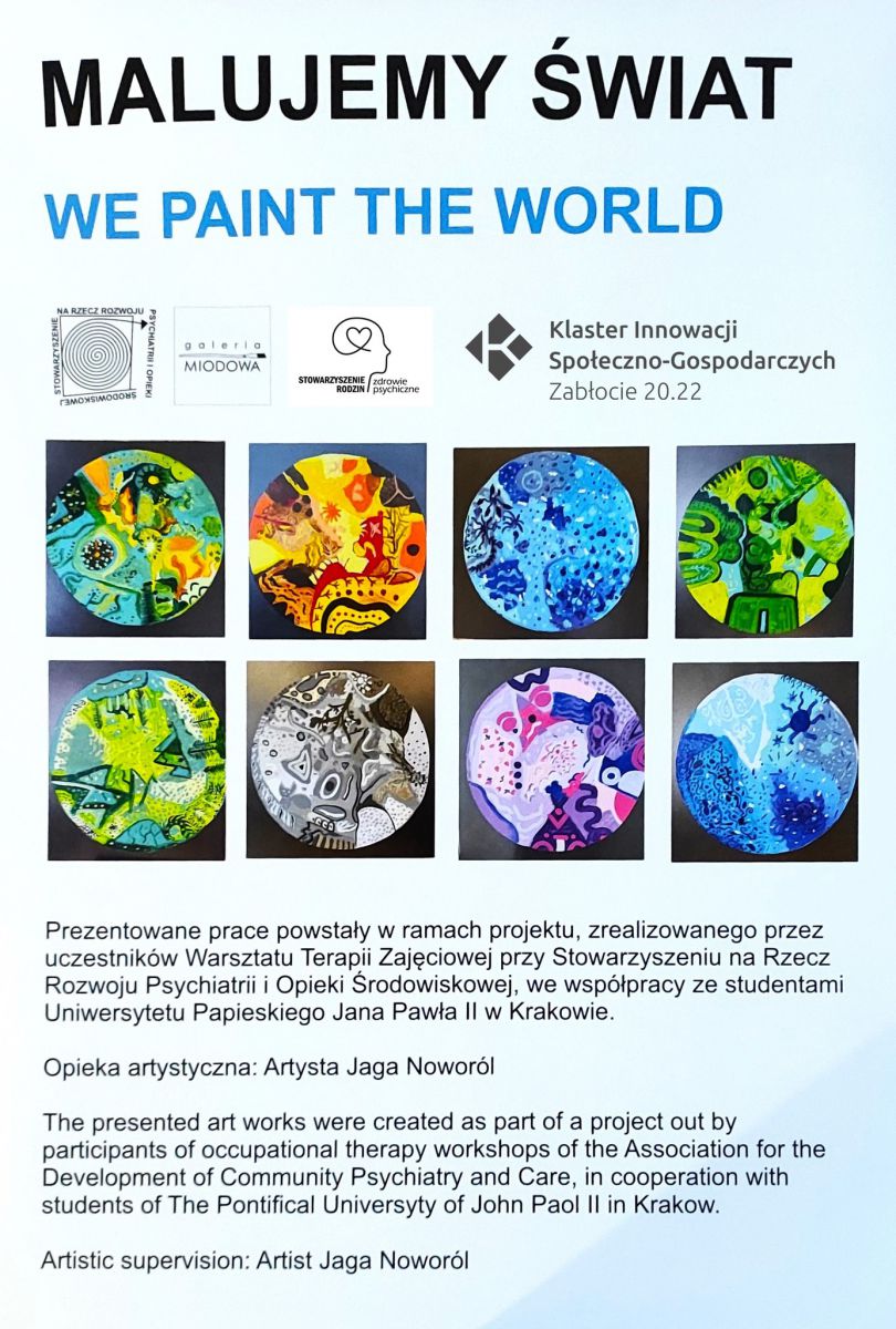 Obrazy powstały jako efekt wspólnej pracy osób z niepełnosprawnościami i studentów Uniwersytetu Papieskiego, którzy w ten sposób poznawali rolę art-terapii w rehabilitacji osób chorujących psychicznie - uczestników WTZ Miodowa 9.