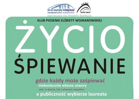 Scena Tęcza zaprasza na konkurs piosenki ŻYCIOŒPIEWANIE, nowy stały program organizowany przez Dom Kultury „Podgórze”. Gospodarzami wieczoru będš znana powieœciopisarka, poetka i pieœniarka, Elżbieta Wojnarowska oraz pomysłodawca projektu, poeta Eryk Ostrowski.