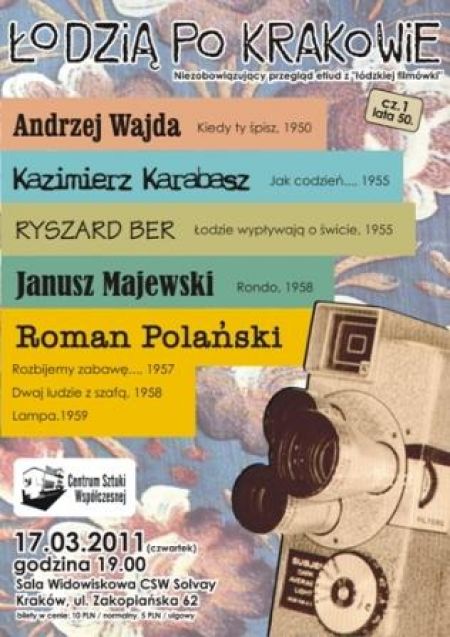 W najbliæszy czwartek zapraszamy do CSW Solvay na pierwszy blok etiud z ³ódzkiej filmówki. Przegl¹d ma charakter niezobowi¹zuj¹cy, gdyæ - choę staramy siź wybieraę najciekawsze filmy - ogranicza nas koniecznoę posiadania kopii w formacie cyfrowym.