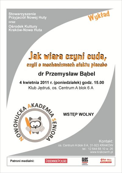 4 kwietnia 2011 r. o godz. 15.00 w Klubie Jędru Orodka Kultury Kraków Nowa Huta odbędzie się kolejny wykład w ramach Nowohuckiej Akademii Seniora.