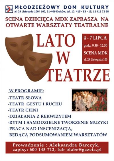 - 13 lat do udziau w warsztatach teatralnych "Lato w teatrze"