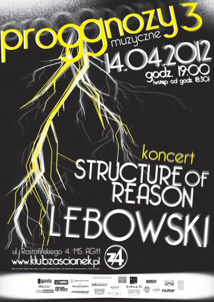 14 kwietnia w krakowskim Klubie Zacianek (ul. Rostafińskiego 4) po raz trzeci usłyszymy ambitnych i nietuzinkowych twórców muzyki około progresywnej. W ramach cyklu Muzyczne ProGGnozy na scenie zaprezentujš się grupy: STRUCTURE OF REASON oraz LEBOWSKI.