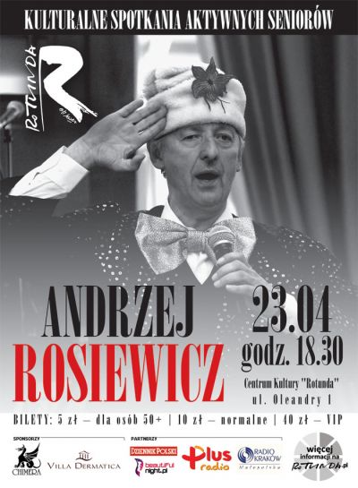 W ramach cyklu KULTURALNE SPOTKANIA AKTYWNYCH SENIORÓW 23 kwietnia wystšpi prawdziwa gwiazda estrady ANDRZEJ ROSIEWICZ!