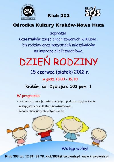 Klub 303 Oœrodka Kultury Kraków-Nowa Huta (os. Dywizjonu 303 1) zaprasza na imprezę okolicznoœciowš dla uczestników zajęć klubowych oraz ich rodzin, a także wszystkich mieszkańców czyżyńskich osiedli.