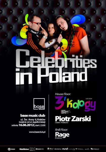 Kolejny miesišc odszedł w niebyt przeszłoœci, jednak to co dobre, zawsze powraca! „Celebrities in Poland" - ekskluzywna, ekstrawagancka i nietuzinkowa noc w base music club. 19 Maja 2012 roku wybierz własnš drogę, wkrocz na czerwony dywan i stań się częœciš tego wydarzeni...a. Fragmentem czegoœ innego, modnego, porywajšcego, budzšcego zmysły i niezwykłego.