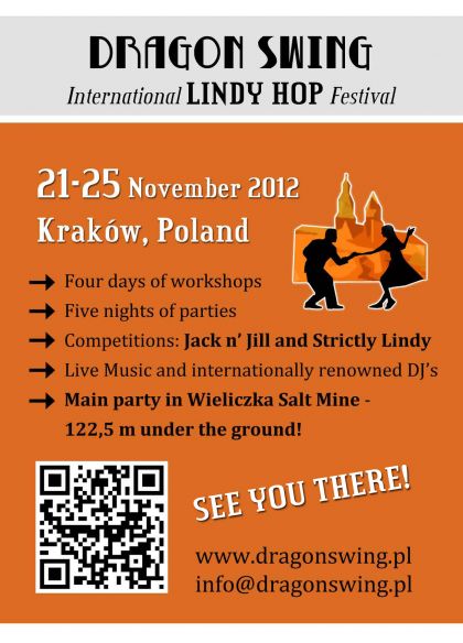 Dragon Swing to międzynarodowy festiwal tańca Lindy Hop, który odbędzie się już po raz trzeci w Krakowie w terminie 21-25 listopada 2012.