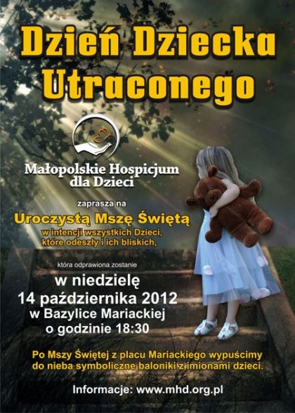 Msza zostanie odprawiona przez Kapelana Hospicjum dla Dzieci, o. Tomasza, w niedziel 14 padziernika 2012 roku, o godz. 18.30 w krakowskiej Bazylice Mariackiej.
