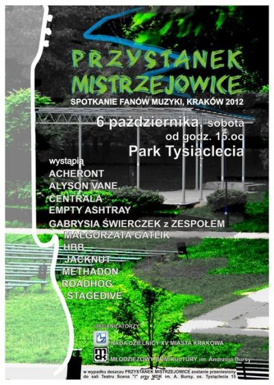 Pierwszy w historii Mistrzejowic przeglšd muzyczny od poezji œpiewanej po havy metal. Inicjatywa Rady Dzielnicy XV wzbogacajšca kulturalnš ofertę dla młodzieży. Celem imprezy sš twórcze konfrontacje muzycznych zespołów i indywidualnych wykonawców stojšcych u progu kariery, stwarzajšce płaszczyznę do wspólnej zabawy i dobrej rozrywki a także integracji młodzieżowej społecznoœci Dzielnicy XV. Jest to również dšżenie do wywołania więzi emocjonalnych zwišzanych z miejscem zamieszkania oraz próba rozbudzenia i kształtowania postaw społecznikowskich.