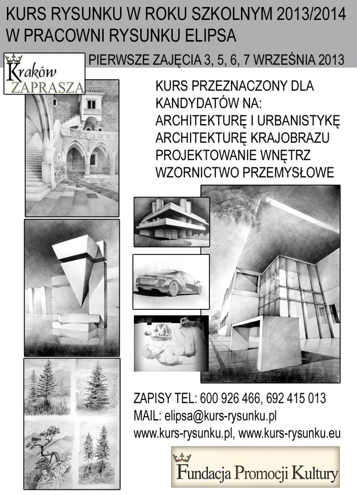 Kurs Rysunku Odręcznego dla Kandydatów na studia: Architektura i Urbanistyka, Architektura Krajobrazu, Projektowanie Wnętrz, Wzornictwo Przemysłowe w roku szkolnym 2013/2014