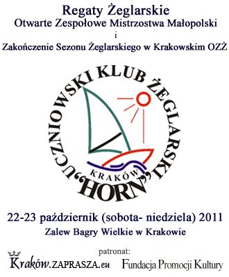 Zapraszamy do uczestnictwa w ostatnich regatach na malowniczo położonym jeziorze Bagry Wielkie , wszystkich żeglarzy, życząc wspaniałej zabawy i pomyślnych wiatrów. 22 - 23 październik (sobota - niedziela) 2011 Zalew Bagry Wielkie w Krakowie