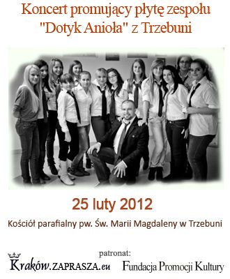 "Dotyk Anioła" to zespół, który działa przy Świetlicy Środowiskowej w Trzebuni, filii Gminnego Ośrodka Kultury i Sportu w Pcimiu pod kierownictwem p. Roberta Bylicy i p. Anny Słonina. Zespół, który stanowi Trzebuńska młodzież, poszerza swoje muzyczne horyzonty, zainteresowania i na tym polu ma już wiele sukcesów.