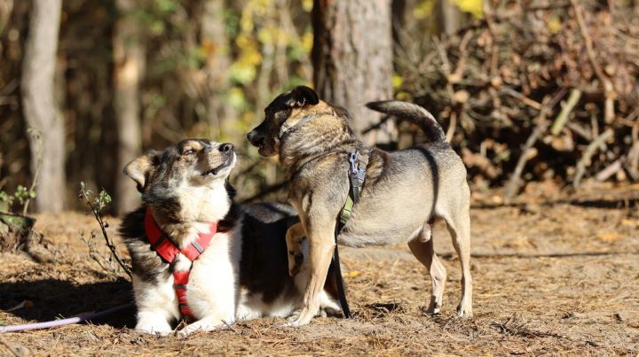 Nauczył się spacerować na smyczy i powoli szkoli tę umiejętność.