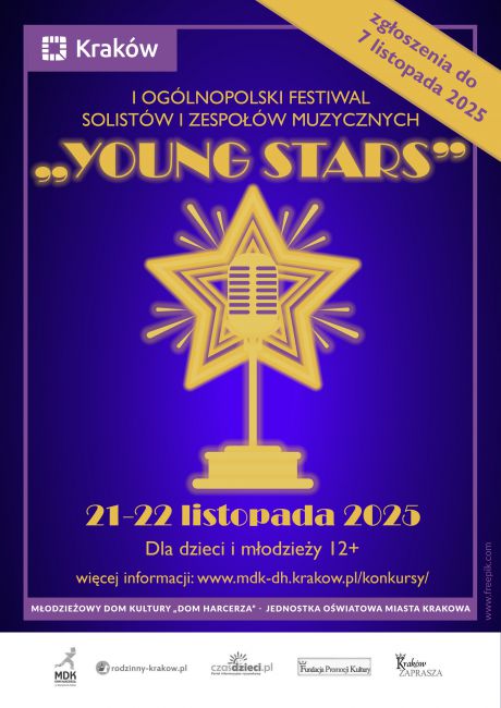 👉 Szczegóły dostępne są na stronie festiwalu: mdk-dh.krakow.pl/i-ogolnopolski-festiwal-solistow-i-zespolow-muzycznych-young-stars