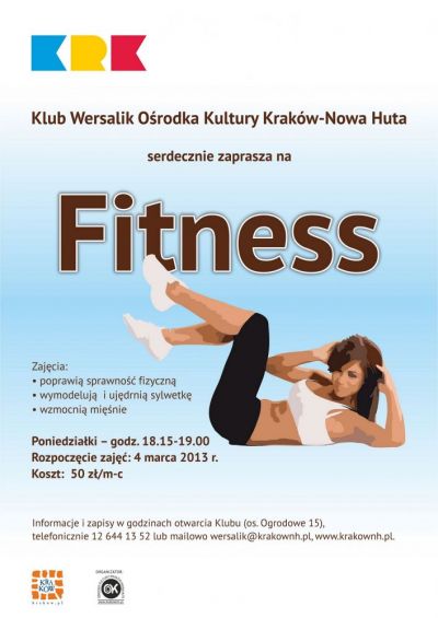 Klub Wersalik Ośrodka Kultury Kraków-Nowa Huta (os. Ogrodowe 15) zaprasza wszystkich, bez względu na wiek, na kurs fitness.