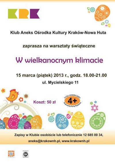 Zapisy do 13 marca w Klubie (aneks@krakownh.pl, tel. 12 685 00 34).