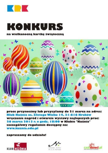 Co roku w Klubie Kuźnia Ośrodka Kultury im. C. K. Norwida organizowane są dwa konkursy (Wielkanoc i Boże Narodzenie) oraz wystawy pokonkursowe prezentujące twórczość dziecięcą. Do udziału w najbliższym konkursie na wielkanocną kartkę świąteczną zaproszono wszystkie chętne dzieci, w trzech grupach wiekowych (3-6 lat, 7-9 lat, 10-14 lat) a także grupy z Przedszkoli, Szkół, Klubów, Domów Kultury. Fundatorami nagród są Rada Dzielnicy XV Mistrzejowic i Klub Kuźnia OKN.