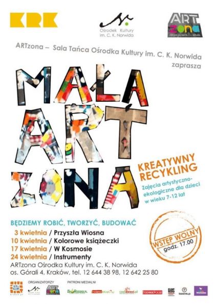 Mała ARTzona to artystyczno-ekologiczne zajęcia dla dzieci, wykorzystujące kreatywne zabawy, upcykling, czyli wykorzystanie zużytych materiałów. Będziemy tworzyć zabawki, biżuterię i inne przedmioty. Pokażemy dzieciom jak przy odrobinie chęci można połączyć oszczędność, pożyteczność i świetną zabawę!