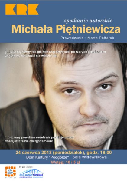 W Domu Kultury Podgórze odbędzie się spotkanie autorskie z poetą młodego pokolenia, pisarzem i redaktorem "Metefory" - Michałem Piętniewiczem. W programie przedstawione zostaną wiersze poety oraz fragmenty prozy poetyckiej.