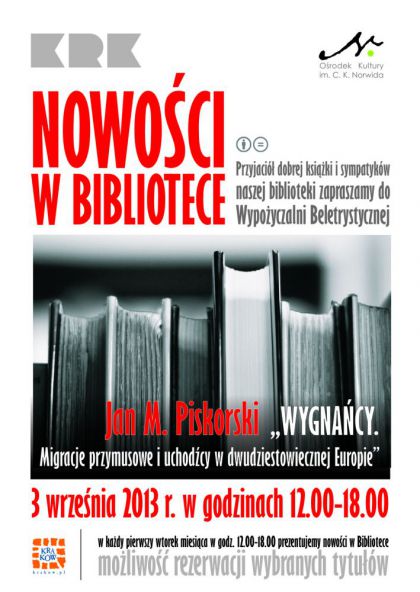 Zapraszamy do Biblioteki Oślrodka Kultury im. C. K. Norwida na prezentacja nowych książek , rekomendacje, rezerwacje: