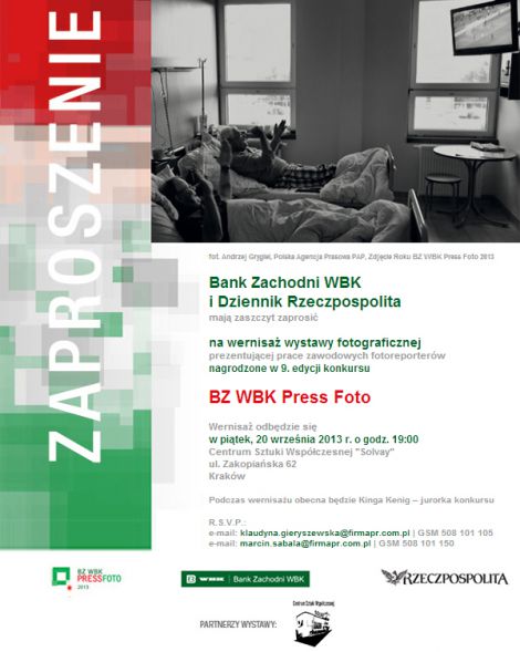 Już 20 września w Centrum Sztuki Współczesnej „Solvay” w Krakowie zagoszczą zdjęcia autorstwa czołowych polskich fotografów prasowych, dokumentujących najważniejsze wydarzenia 2012 roku. Wśród nich znalazły się fotografie i fotokasty znanych krakowskich i zakopiańskich fotografów: Bartłomieja Jureckiego (Tygodnik Podhalański), Jakuba Ociepy (Gazeta Wyborcza Kraków) oraz Bartka Solika (freelancer).