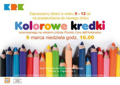 Na wzór tych małych śpiewaków, w Centrum Kultury „Dworek Białoprądnicki” stworzony zostanie chór dziecięcy „Kolorowe Kredki”, który prowadzi Aleksandra Nowak. Na przesłuchania, które odbędą się w niedzielę (9 marca) o godz. 16:00, organizatorzy zapraszają dzieci w wieku 5 – 12 lat. Udział w chórze będzie bezpłatny.