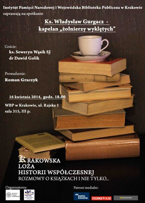 „Ks. Władysław Gurgacz - kapelan żołnierzy wyklętych” spotkanie z cyklu „Krakowska Loża Historii Współczesnej” – Kraków, 16 kwietnia 2014 r.