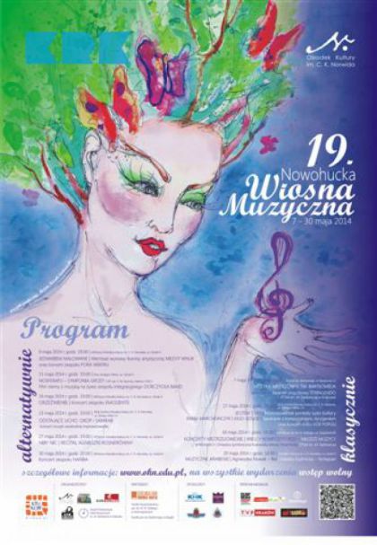 W dniach 7-30 maja 2014 Ośrodek Kultury im. Cypriana Kamila Norwida serdecznie zaprasza na 19. Nowohucką Wiosnę Muzyczną. Jak co roku będzie można wybierać wśród wydarzeń w różnych muzycznych klimatach - nie zabraknie zarówno muzyki klasycznej, poetyckiej, jak i improwizowanej, rockowo-bluesowo-akustycznej czy zbuntowanej punkowo-podwórkowej, a także mieszanki zmysłowej bossa novy, swingu, tanga, i bolera. Wszystkie spotkania odbędą się w najbardziej zielonej części Krakowa – Nowej Hucie, która po raz dziewiętnasty zakwitnie w maju muzyką.