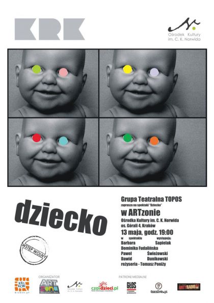 Serdecznie zapraszamy do ARTzony Ośrodka Kultury im. C. K. Norwida na pierwszy spektakl Grupy Teatralnej Topos pt. „DZIECKO”.