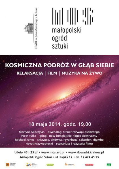 Wydarzenie, które zmienia sposób postrzegania otaczającej rzeczywistości. Fascynująca wyprawa poprzez kosmiczną przestrzeń. Gwiazdy, galaktyki, nieznane światy oraz planeta Ziemia widziana z niezwykłej perspektywy. Podróż ta, to nie tylko zaproszenie do przestrzeni obrazu, ale także do bogatej przestrzeni dźwięku. Piotr Pułka i Michael Jones zagrają koncert, używając wielu egzotycznych instrumentów, gdzie obraz będzie dyrygentem, a dźwięki orkiestrą. Wyprawa ta, to także podróż do własnego wnętrza. Poprzez oddech i głęboki relaks artyści przygotują Was do odkrycia nowych, fascynujących przestrzeni w sobie.