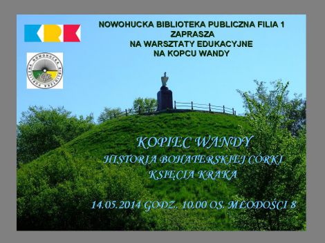 Warsztaty edukacyjne odbędą się w ramach „Tygodnia Bibliotek - Czytanie łączy pokolenia” na Kopcu Wandy. Podczas warsztatów słuchacze poznają historię Kopca Wandy i legendę o bohaterskiej córce księcia Kraka, zamieszczoną w zbiorze legend krakowskich, autorstwa Jana Adamczewskiego. Uczestnicy spotkania zobaczą również marmurowy pomnik projektu Jana Matejki, którym zwieńczony jest Kopiec oraz będą podziwiać widoki z Kopca Wandy.