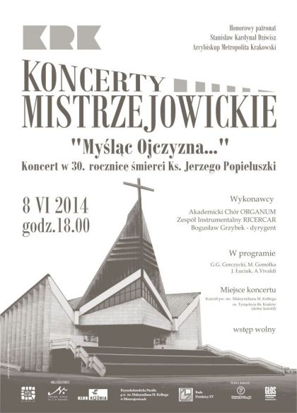 Klub Kuźnia Ośrodka Kultury im. C. K. Norwida serdecznie zaprasza do Kościoła pw. św. M. M. Kolbego w Mistrzejowicach na Koncert „Myśląc Ojczyzna… „