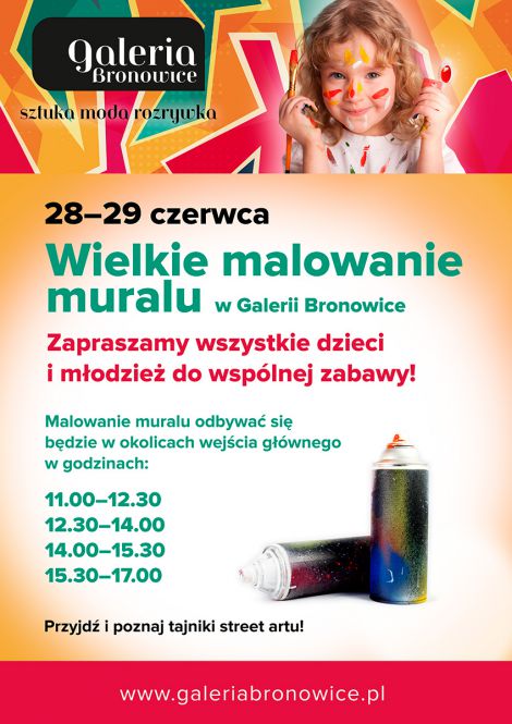 Jednym z ważnych wydarzeń tego weekendu będzie wspólne malowanie muralu – któż z nas nie chciałby „bezkarnie” poszaleć z pędzlem i farbami w sprayu? Teraz nadarza się doskonała okazja – ekipa muralowców czekać będzie na dzieci (te małe i te nieco większe), by wspólnie wymalować około 140-metrowy mur przez budynkiem.