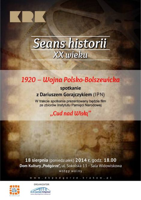 Zapraszamy na spotkanie z Dariuszem Gorajczykiem (IPN) dot. Wojny polsko-bolszewickiej 1920 oraz pokaz filmu ze zbiorów IPN „Cud nad Wisłą”