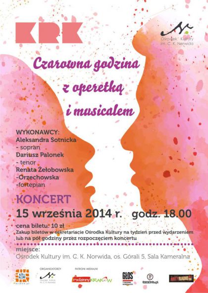 Koncert odbędzie się 15 września 2014 r, o godz. 18.00, w Sali Kameralnej Ośrodka Kultury im. C. K. Norwida, os. Górali 5.