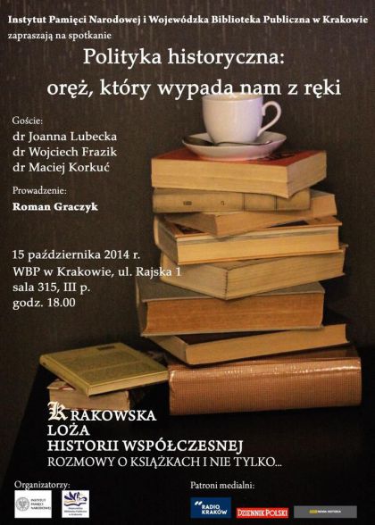 „Polityka historyczna: oręż, który wypada nam z ręki” spotkanie z cyklu „Krakowska Loża Historii Współczesnej” – Kraków, 15 października 2014 r.