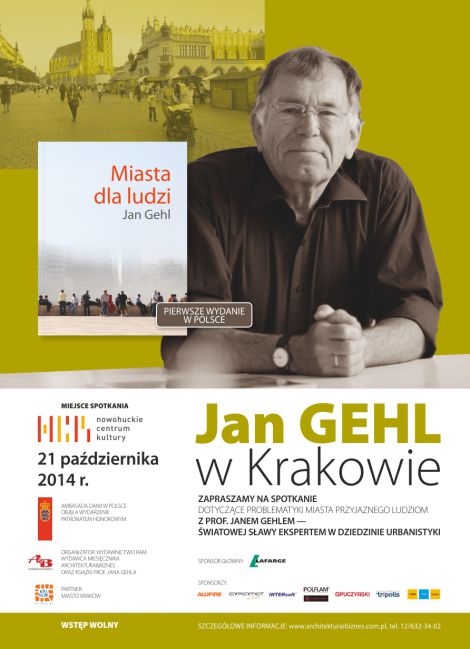 Zapraszamy serdecznie 21 października 2014 r. w NCK Kraków, godz. 18.30 na spotkanie z Profesorem Janem Gehlem, wybitnym duńskim architektem i urbanistą, propagatorem koncepcji humanistycznego rozwoju miast i autorem projektów zmian w przestrzeni miejskiej m.in. Nowego Jorku i Moskwy.