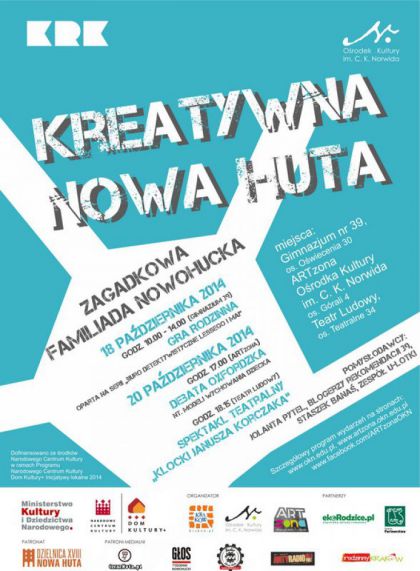 ***Projekt KREATYWNA NOWA HUTA dofinansowano ze środków Narodowego Centrum Kultury w ramach Programu Narodowego Centrum Kultury Dom Kultury + Inicjatywy lokalne 2014