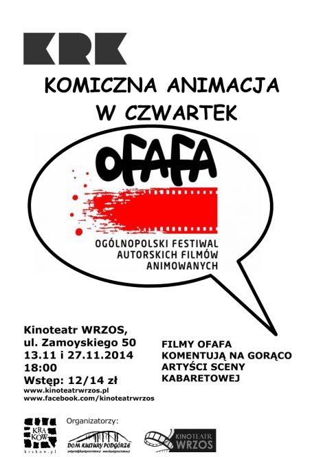 „Komiczna animacja w czwartek” to pokazy filmowe animacji nagradzanych podczas Ogólnopolskiego Festiwalu Autorskich Filmów Animowanych, odbywającego się od lat w kinoteatrze Wrzos. Pokazom towarzyszyć będzie improwizowany komentarz komediowy.