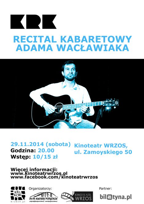 Bilety do nabycia na: http://biletyna.pl/event/Recital-Adama-Waclawiaka-Kinoteatr-Wrzos-Krakow-e19332.html#buy