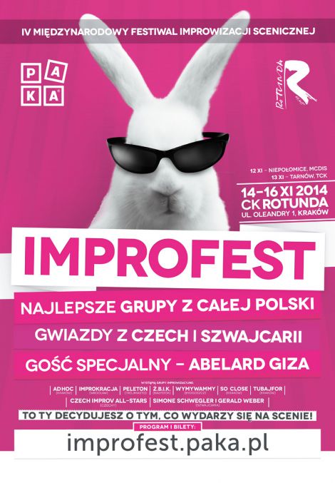Czwartą edycję festiwalu ImproFest (12-16.11.2014) uświetni znakomity duet szwajcarskich improwizatorów Simone Schwegler i Gerald Weber, najlepsi improwizatorzy z Czech – „Czech Impro All Stars”, a także najlepsze polskie grupy specjalizujące się w improwizacji – AD HOC (Kraków), Peleton (Gdańsk), wymyWammy (Bydgoszcz), ŻBIK (Białystok), Improkracja (Wrocław), So Close (Kraków) oraz Tubajfor (Kraków). Na festiwalu pojawią się znakomici goście specjalni – Abelard Giza i Wojciech Tremiszewski znani z kabaretu Limo i serialu improwizowanego „Spadkobiercy”.