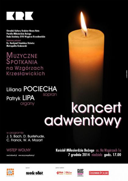 W Kościele Miłosierdzia Bożego (os. Na Wzgórzach 1a) 7 grudnia 2014 r. o godz. 17.00 odbędzie się koncert adwentowy, w programie którego znajdą się m.in. utwory Jana Sebastiana Bacha, Wolfganga Amadeusza Mozarta, Dietricha Buxtehude czy Cesara Francka.