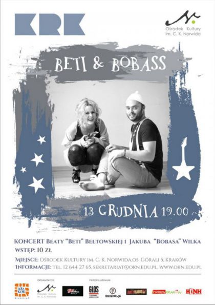 Projekt „Beti & Bobass" powstał w 2012 roku. Łączy dwoje utalentowanych muzyków: Beatę „Beti” Bełtowską i Jakuba „Bobasa” Wilka – znanego również z projektu realizowanego razem z Agatą Siemaszko czy występów w zespole Trebunie-Tutki. Duet Beti & Bobass to mieszanka różnorodnych stylów i temperamentów co wpływa na żywiołowość i temperaturę ich muzyki. Wykonują covery: rockowe, blues – rockowe, utwory balladowe, przeboje lat 60/70/80/90 oraz swój autorski materiał. W czasie występu Beti & Bobass zaprezentują świeżutko wydany autorski materiał nawiązujący klimatem do grudniowych świąt.