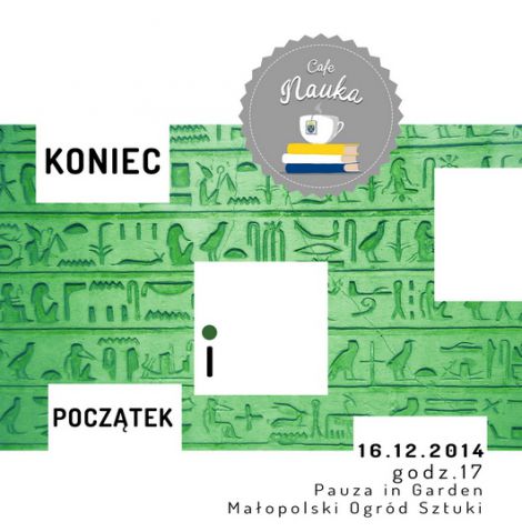 Już niedługo początek następnego roku, a zarazem koniec obecnego. Tak zwykle myślimy: najpierw coś się zaczyna, a potem w przyszłości ma swój koniec. Tymczasem śmiało można odwrócić te relację: coś musi się skończyć, aby coś nowego mogło się rozpocząć. W grudniowym spotkaniu Cafe Nauka (16.12.2014 - wtorek, godz.17, Pauza In Garden, w podziemiach Małopolskiego Ogrodu Sztuki, ul. Rajska, wstęp wolny) sprawdzimy, jak koniec wyznacza początek – odwołując się do wiedzy o dawnych cywilizacjach oraz do biologicznych podstaw istnienia świata natury i człowieka.