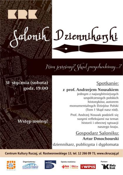 Zapraszamy na spotkanie z prof. Andrzejem Nowakiem z Uniwersytetu Jagiellońskiego, jednym z najwybitniejszych współczesnych polskich historyków, autorem monumentalnych Dziejów Polski (Tom I Skąd nasz ród).