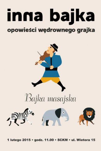 Wędrowny Grajek i Bajarka Ola zapraszają dzieci na „Bajkę masajską”.
