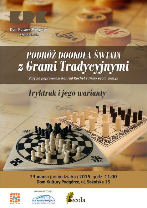 zabieramy Was w podróż dookoła świata! Podczas spotkania poznamy tryktraka uznawanego za jedną z najstarszych gier planszowych na świecie oraz jego warianty. Tryktrak jest grą strategiczną, która rozluźnia i daje rozrywkę, jak również wyostrza zmysły, zmusza zawodników do logicznego myślenia i szybkiego podejmowania decyzji.